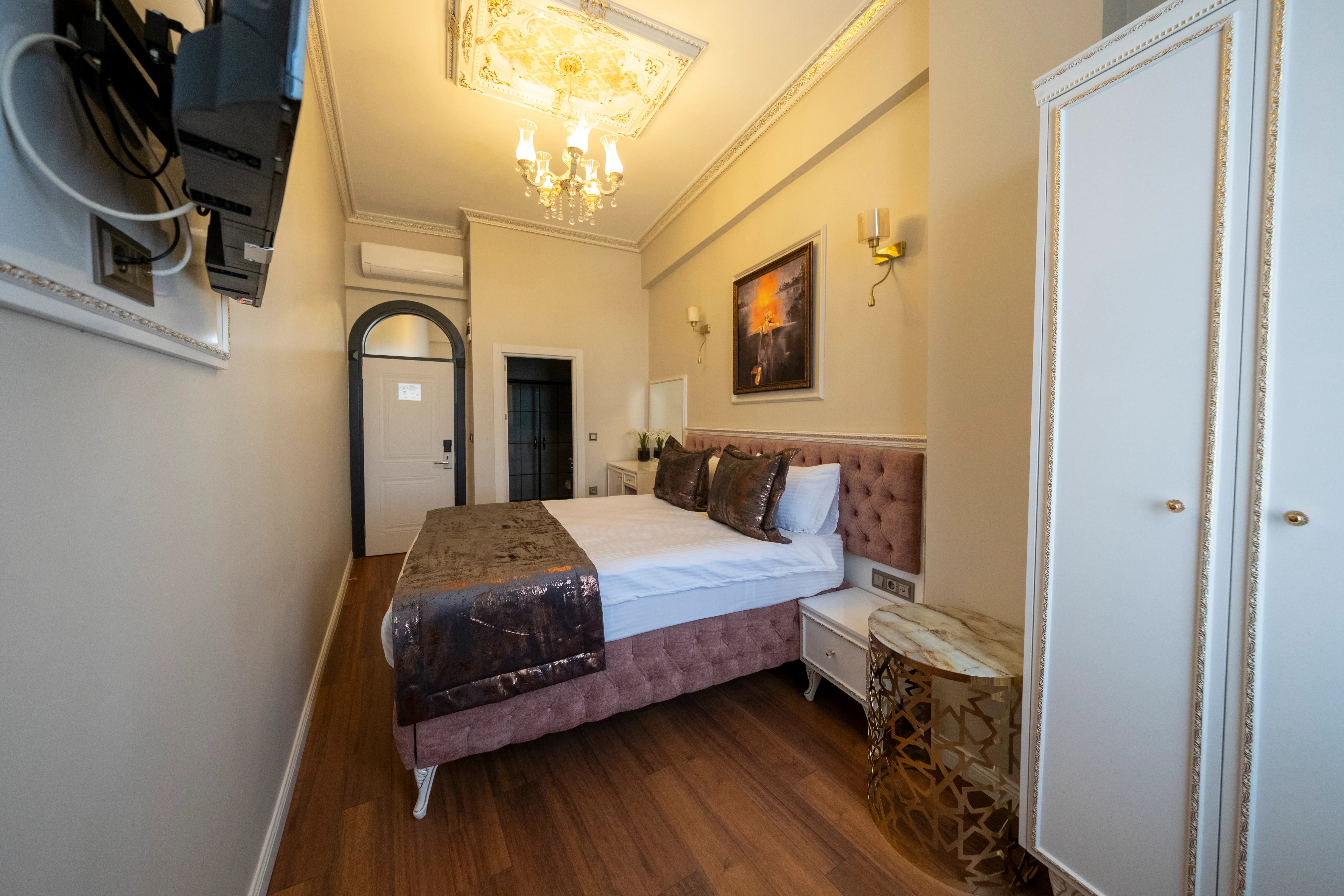 Solomon's Mansion's Standard Double Rooms, the best room option available, offer a magnificent accommodation experience designed for guests seeking luxury and comfort. This room choice provides a meticulously thought-out, comfortable, and elegant living space. Our Suite rooms have a spacious and airy layout, featuring a separate seating area, a bedroom, and a private bathroom.